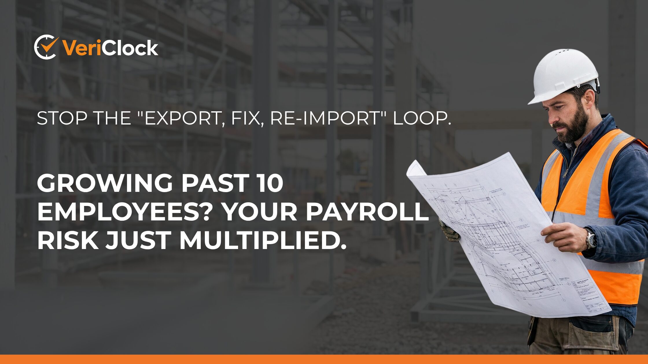 Payroll does not break at five employees. It breaks at 15. That is when time edits pile up every Friday. Job costing starts drifting away from reality, and overtime gets recalculated manually.
